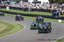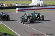 Dans le cadre du 100ème anniversaire de Bentley, le Brooklands Trophy est dédié aux modèles avant-guerre de la marque. J’affectionne tout particulièrement ces autos, avec un coup de cœur pour les 4.5 Litres Blower dont le sifflement du compresseur me fait dresser les poils. Presque 30 exemplaires, tous modèles confondus, datant de 1922 à 1930, sont présents. Fait intéressant de la course, les pilotes partent avec le toit fermé et ils doivent faire un arrêt au stand pour décapoter et ensuite repartir. Très amusant d’observer cela depuis les box. Et pour ceux qui disposent d’une auto à toit fixe, le pilote sort de la voiture et il doit savourer une tasse de thé en marchant autour de son bolide. So British, je suis fan !