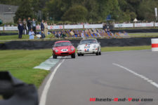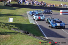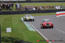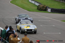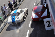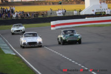 Deuxième course d’une heure, toujours avec deux pilotes, la fameuse RAC TT Celebration. C’est LE trophée le plus prisé du Revival avec un plateau composé de GT et prototypes qui ont couru entre 1960 et 1964. On retrouve principalement des AC Cobra et des Jaguar Type E avec, en guest star, une des deux seules Type E Lightweight « low-drag » originales (immatriculation « 49 FXN »). Il y a aussi quelques autos plus particulières, telles qu’une Bizzarrini 5300 GT, une TVR Griffith 400, des Corvette Stingray, des Porsche 904 et 906 et l’Aston Martin DP212, un prototype que le constructeur a fabriqué pour participer aux 24 Heures du Mans en 1962. Pour mener ces prestigieuses voitures, la liste des pilotes fait aussi tourner la tête avec quasiment tous ceux qui s’alignaient dans le St Mary’s Trophy, voire même plus puisque Derek Bell, Benoit Tréluyer et Nicolas Minassian ont rejoint les rangs.
