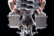 Sous le capot arrière avec sa vitre en plexiglas, on découvre le V8 biturbo qui développe 478 ch. Avec un poids de 1’100 kg, la F40 offrait des performances tout simplement exceptionnelles pour l’époque. La vitesse de pointe atteint 324 km/h et le 0-100 km/h est abattu en 4.1 secondes. La F40 a tellement marqué ma jeunesse, que trente ans après je me souviens encore de ces chiffres.