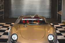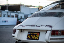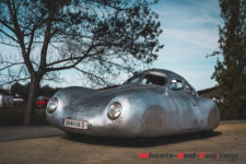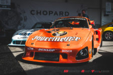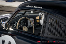 Rod Emory, customisateur et restaurateur californien de renom sur Porsche 356, est au volant d’une 935 (# 904, est l’un des 13 modèles de 1977, compétition-client, fournie par Porsche à des écuries privées afin de participer aux Championnats d’Europe et du Monde d’Endurance en catégories Gr V ou IMSA. Elle fut vendue à Reiner Kamphausen, le manager de Jurgen Kannacher qui participa à deux courses du Championnat national allemand, avant de la céder au célèbre pilote suisse Claude Haldi qui l’engagea aux côtés du talentueux Herbert Muller, dit “Herbie”) et d’une Elva Porsche.