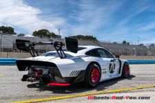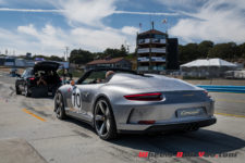 Un peu plus loin, le team d’usine Porsche travaille sur la 919 Hybrid Evo « Tribute », comme pendant une course d’endurance. Tout le monde s’agglutine autour de la voiture qui a littéralement explosé le record au tour sur la fameuse boucle nord du Nürburgring plus tôt dans l’année, signant un temps extraterrestre de 5:19:546, pour prendre des photos et jeter un œil dans le cockpit. Tous les pilotes sont présents, dont Timo Bernhard, qui a signé ce record. Cette auto termine sa tournée d’adieu bien méritée avant de rejoindre le musée à Stuttgart où elle sera exposée prochainement. La légende dit qu’un record au tour avec la 919 Evo sur le circuit de Laguna Seca n’aurait pas été le bienvenu…