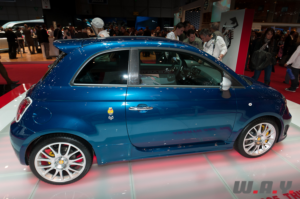 La marque au scorpion a entamé en 2010 une collaboration avec celle du Cavalino Rampante dont la 695 Tributo Ferrari, produite en série limitée, en est le fruit. Au programme, l’excellent petit moteur 1.4 litres turbo qui développe dans cette évolution pas moins de 180 chevaux. Il est accouplé à la boîte de vitesses robotisée “MTA” avec palettes au volant. Dehors, hormis les coloris Ferrari vous y trouverez des jantes spécifiques s’inspirant des GT de Maranello et une quadruple sortie d’échappement distillant par ailleurs une sympathique mélodie dès le moteur démarré. A l’intérieur, le tableau de bord s’orne de carbone tandis que de magnifiques baquets Sabelt affirment les velléités sportives du petit pot de yaourt. Outre le gris et le bleu présentés ici, la 695 Tributo Ferrari est également disponible en “Giallo Modena” (jaune) et “Rosso Corsa” (rouge). Dépêchez-vous, il n’y en aura pas pour tout le monde : au total seront fabriqués 1199 exemplaires en rouge, 399 en jaune, 99 en gris et 99 en bleu. Mais ce sera du côté du porte-monnaie que le scorpion va piquer… La petite “Ferrabarth” négocie ses atours dès EUR 35’500.-… En Euros, oui, étant donné que la distribution est assurée par la maison-mère d’Abarth.