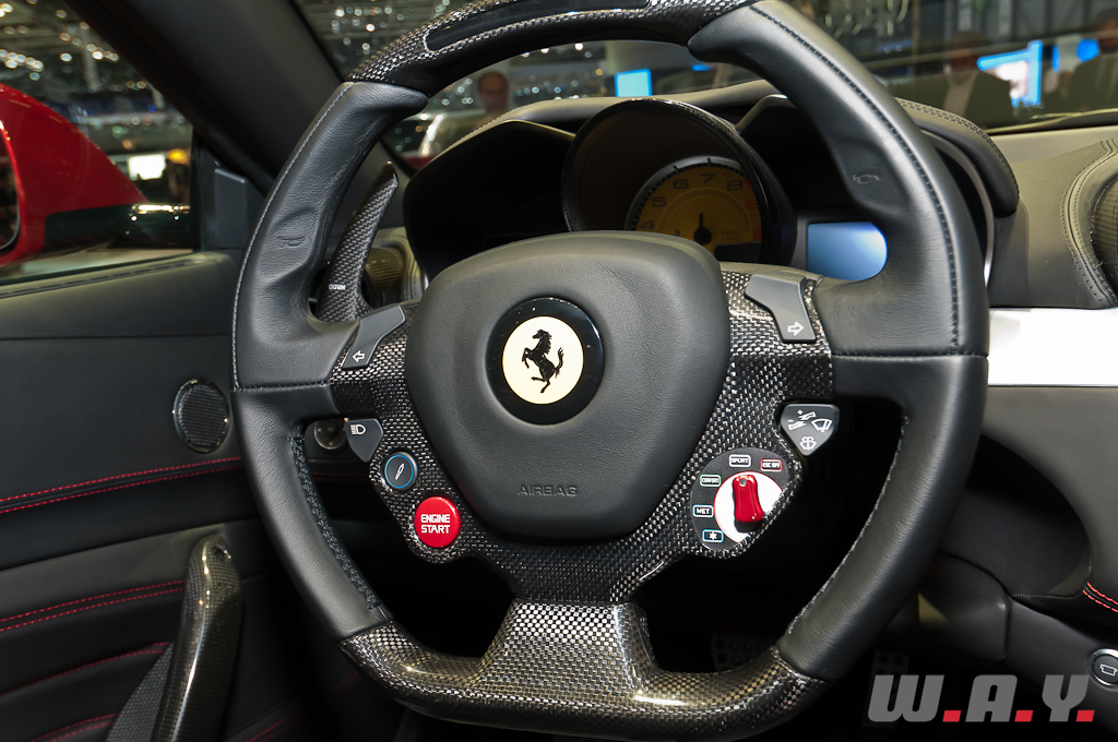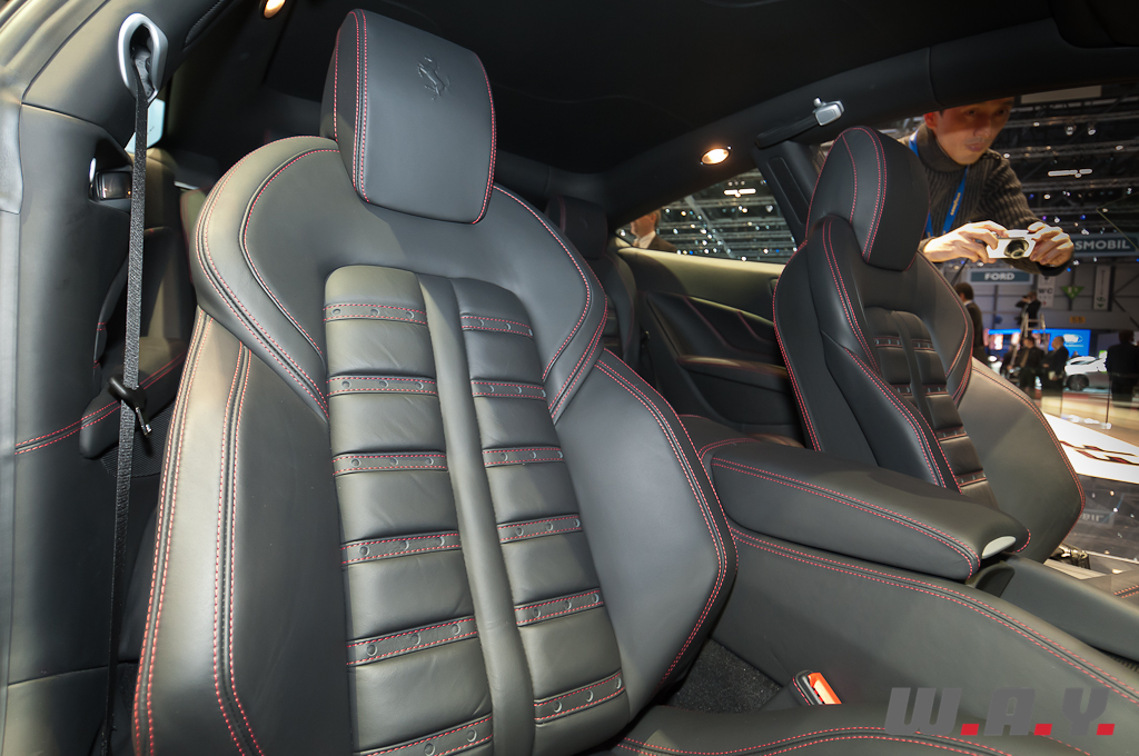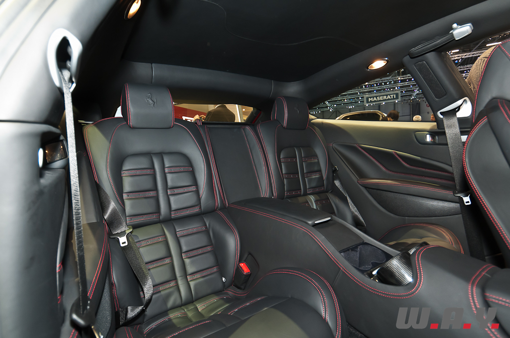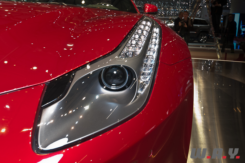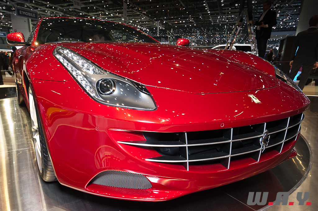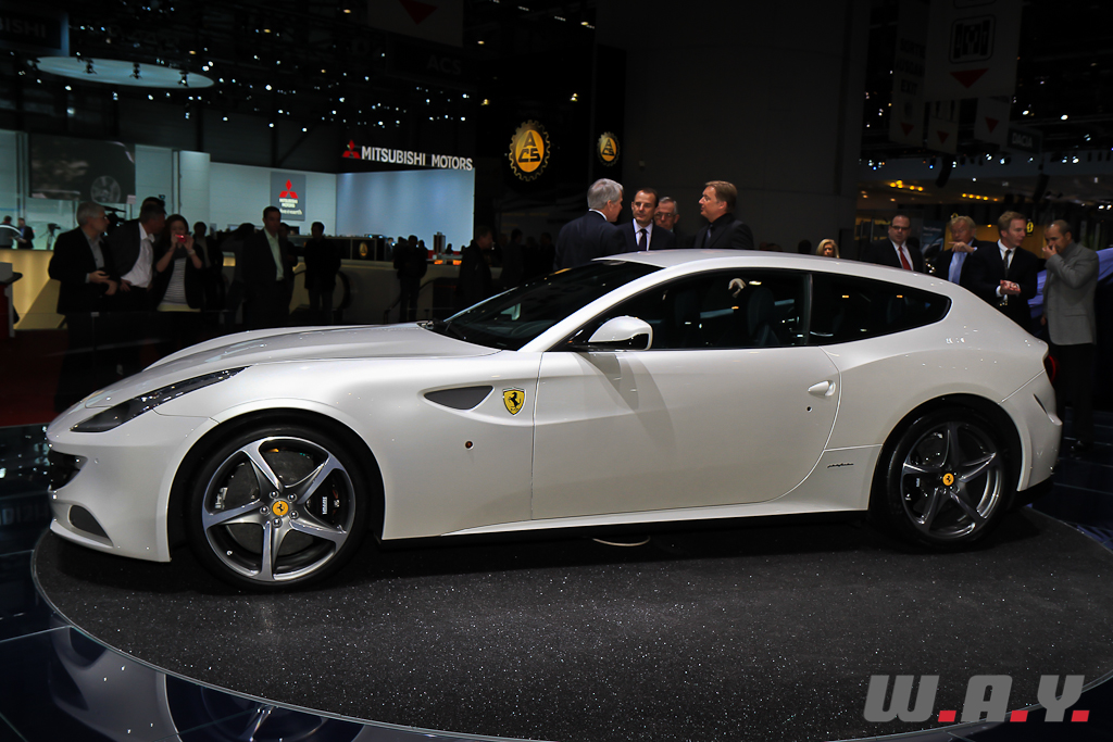 Nous avions déjà découvert la Ferrari FF suite à la présentation aux clients privilégiés de la marque et dans les différents communiqués de presse. Au Salon de Genève c’est l’occasion pour nous de l’observer sous tous ses angles et même s’installer à bord. Pas de doute, en trois dimensions, elle est encore plus belle que sur les photos. Pour rappel, cette nouvelle Ferrari est motorisée par un V12 6.3 qui développe 660 CV pour un couple 683 Nm (dont 500 Nm disponibles dès 1000 t/min) et couplé à une boite à double embrayage 7 rapports. Le 0-100 km/h est avalé en 3.7 secondes et la vitesse de pointe est de 335 km/h. Mais il n’y a pas que les performances pures qui ont été améliorées : Ferrari a aussi travaillé sur la consommation, 15.4 l/100 km, et sur les émissions de CO2, 360 g/km. C’est 25% de moins par rapport au précédent V12 de Maranello. Le système quatre roues motrices développé par Ferrari fournit le couple sur les roues arrières prioritairement et c’est ensuite l’électronique qui gère la répartition sur les quatre roues en fonction des conditions d’adhérence. Le coffre a une contenance de 450 litres qui peut être augmentée à 800 litres en rabattant les sièges arrières. L’habitabilité pour les passagers fait d’énormes progrès : les grands gabarits peuvent prendre place aisément dans les fauteuils profonds et parcourir de longs parcours ne devrait plus s’apparenter à un supplice pour les genoux. Dernier détail qui a son importance, le prix de cette nouvelle Ferrari FF débute à CHF 360’000.- et selon notre contact à l’agence Ferrari/Maserati de Genève, Modena Cars, les ventes démarrent sur les chapeaux de roue dans notre pays.