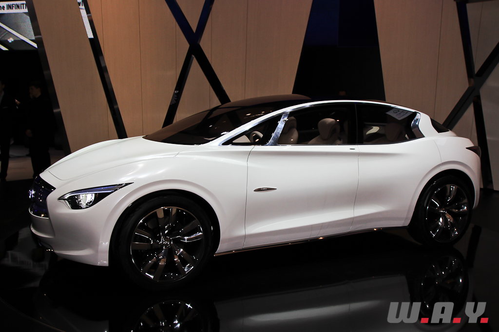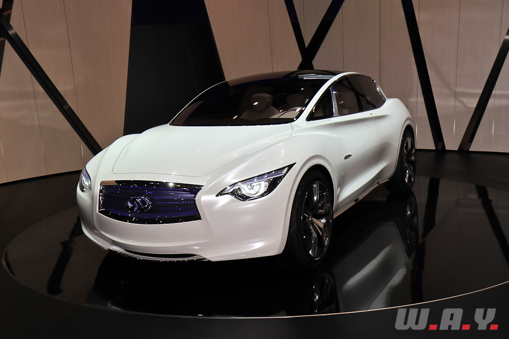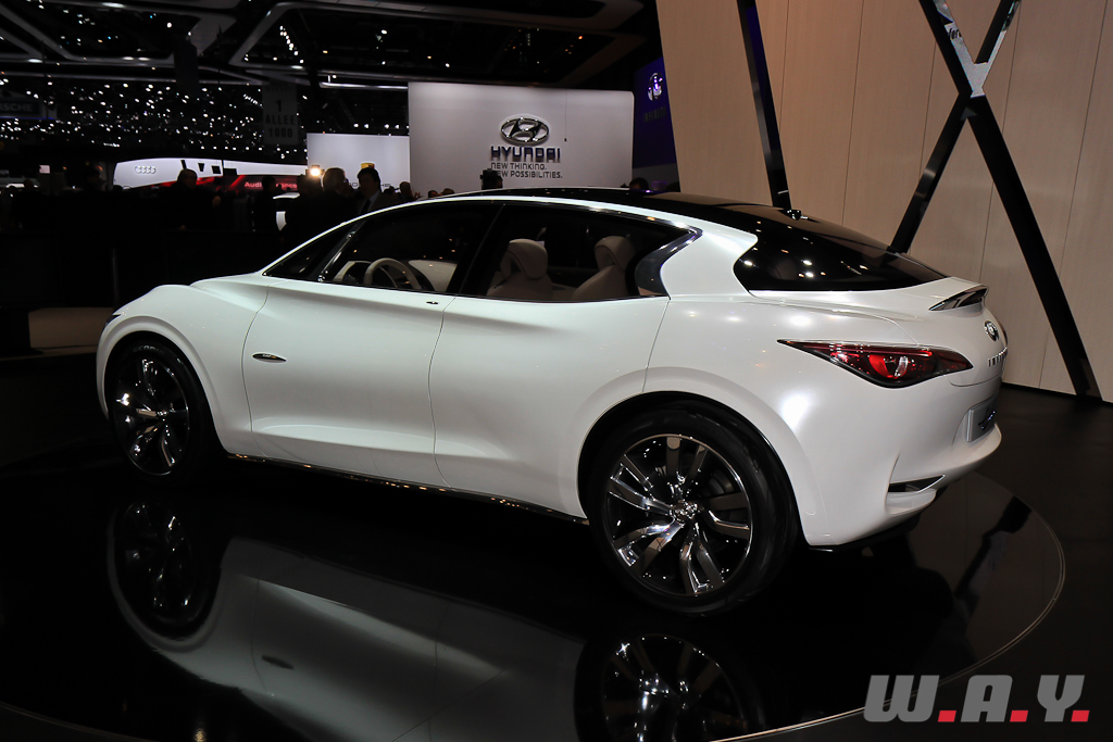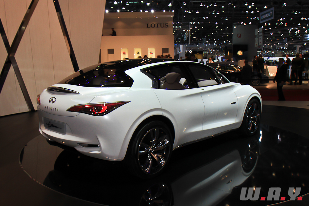 L’Etherea mélange les styles en s’inspirant à la fois d’un coupé et d’un petit SUV pour finalement proposer une voiture compacte mais avec un espace intérieur spacieux. La motorisation de l’Etherea est une combinaison d’un quatre cylindres essence de 2.5l (245 CV) et d’un moteur électrique. Ce système hybride est très proche de celui qui équipe la M35h, le premier véhicule de la marque doté d’une telle technologie, et que nous devrions prochainement essayer sur Wheels And You. Le tout est couplé à une boîte automatique à variation continue (CVT) qui transfère la puissance sur les roues avant uniquement, une innovation chez Infiniti qui a proposé jusqu’à maintenant uniquement des propulsions et des quatre roues motrices.