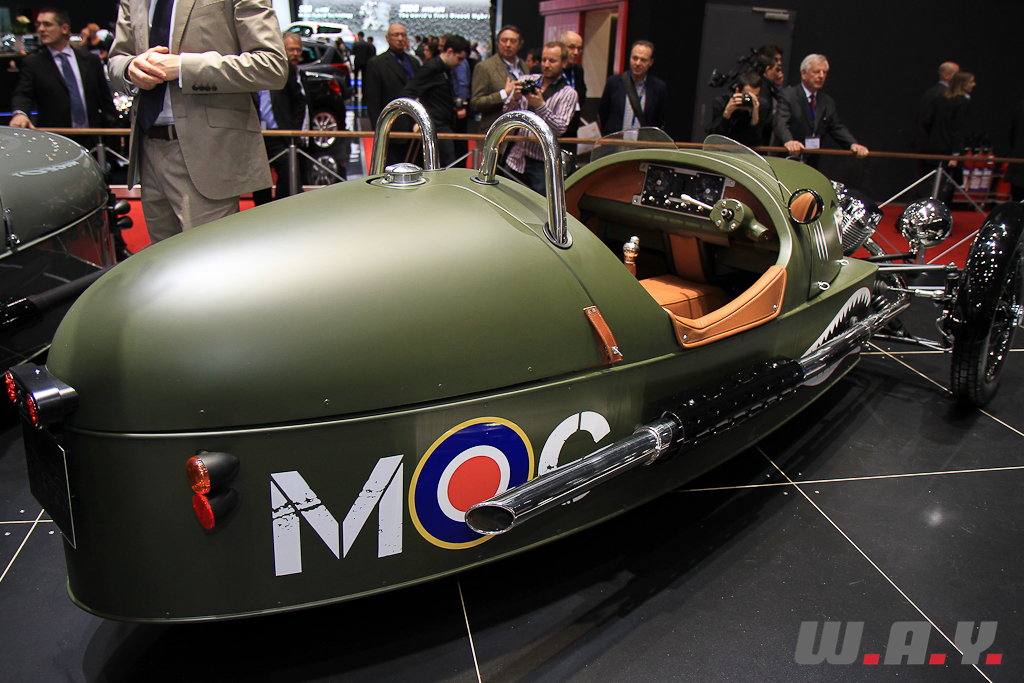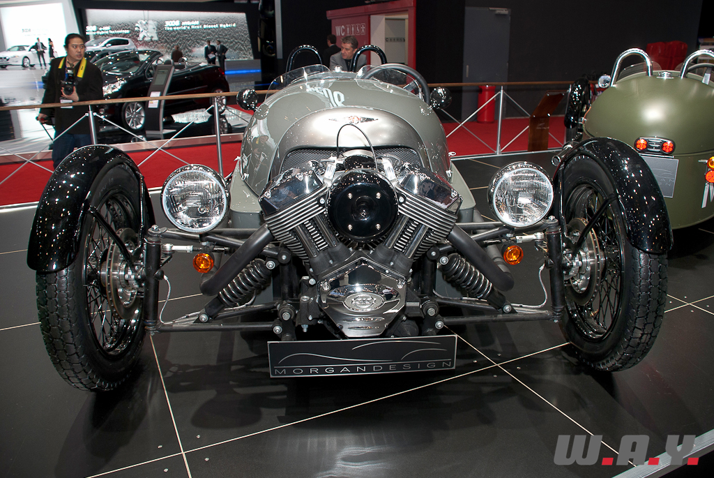 Morgan, petit constructeur anglais dont les procédés de fabrication et les valeurs sont rares dans notre ère d’industrialisation, nous propose à Genève une version moderne de son fameux “tricycle” des années 30, et tout cela en version définitive, prêt à rouler sur nos routes.