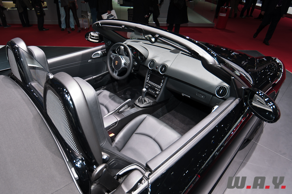 En ce qui concerne le Boxster S “Black Edition”, c’est le même traitement qui est appliqué sur toute la ligne. Tout de noir vêtu, il propose un petit gain de puissance par rapport à un Boxster S normal, 10cv, pour passer la puissance à 320cv. La aussi, série spéciale oblige, la voiture sera disponible en édition limitée, uniquement 987 exemplaires.