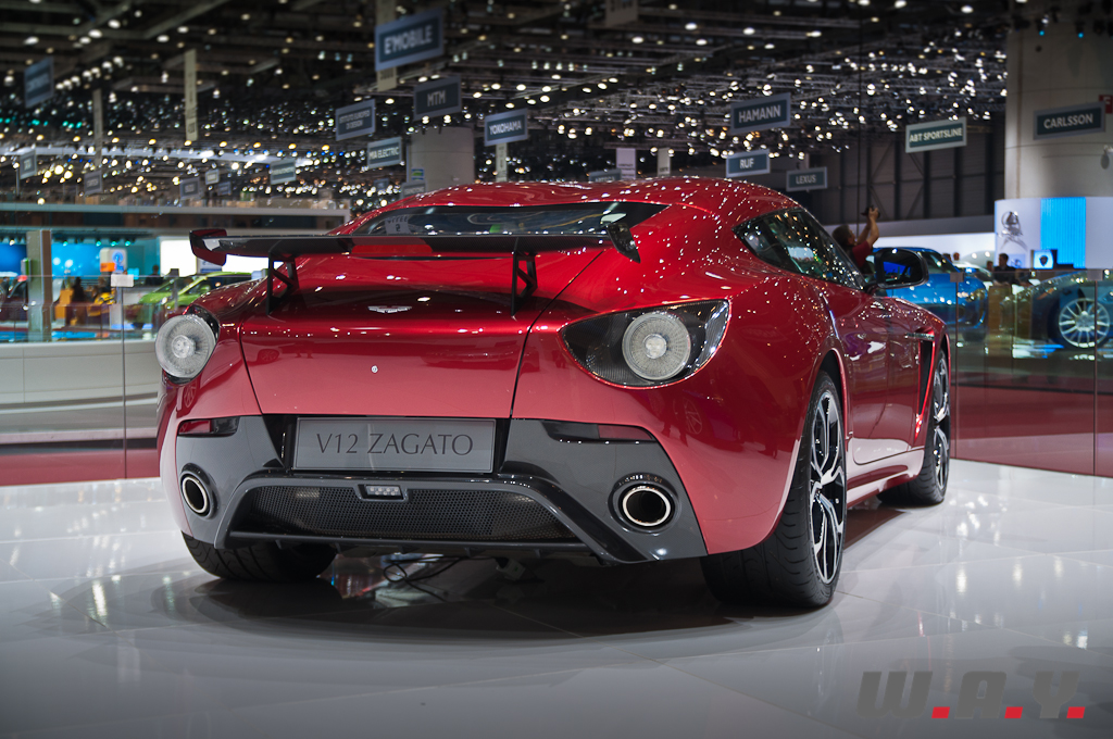 Retraçons tout d’abord la gestation de cette nouvelle icône automobile alliant un prestigieux carrossier italien et un majestueux constructeur anglais. L’année passée à cette même période, au même endroit, le patron d’Aston Martin laissait entendre qu’ils allaient commémorer le 50ème anniversaire de la mythique DB4 GT Zagato d’une manière toute particulière. En effet, quelques mois après, on nous annonçait la réalisation d’une nouvelle Aston Martin en collaboration avec le carrossier Zagato. A peine quelques jours plus tard, pour le concours d’élégance de Villa d’Este, les premières photos de la V12 Zagato sont dévoilées et un concept car participe justement à l’événement. A ce moment nous sommes déjà subjugué par les lignes agressives et dynamiques de cette Aston. Suite à cela une version de course sera développée pour participer au 24h du Nürburgring. C’est en fait deux exemplaires qui prendront part à la course d’endurance, terminant respectivement 89ème et 111ème sur 135 voitures classées. L’histoire aurait pu s’arrêter là, mais que nenni. Il y a quelques semaines, la marque de Gaydon annonçait la production d’une série limitée à 150 exemplaires de cette Aston Martin V12 Zagato. Et nous voilà une année après, au Salon de Genève, avec sous nos yeux cette splendide Aston, très racée et impressionnante, presque intimidante, affichant clairement sa sportivité ainsi que le coup de crayon du carrossier Zagato. Sous le capot le V12 6.0l. de 517 CV pour un couple de 570 Nm repris de sa petite sœur la V12 Vantage. Vous avez été conquis ? Dépêchez-vous, les carnets de commandes sont ouverts, il n’y en aura pas pour tout le monde… en même temps, avec un tarif de base d’environ GBP 330’000.-, il va falloir convaincre votre banquier au préalable. Les premières livraisons sont prévues pour l’automne et quelques exemplaires prendront apparemment le chemin de nos rives lémaniques…