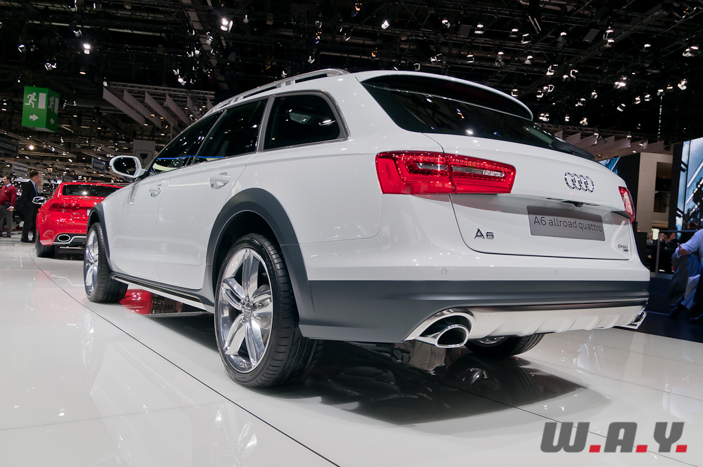Plus légère, cette troisième génération est toujours aussi imposante avec ces 1,90 mètres de large et surtout sa garde au sol majorée de 6 cm proposant ainsi une véritable efficacité en tout-chemin grâce à sa transmission Quattro et sa suspension pneumatique. Comme habituellement chez Audi, ce modèle offre une large palette de motorisations, comme par exemple le V6 3.0 diesel qui se décline en trois niveaux de puissance allant de 204 à 313 CV. Sur la version la plus puissante uniquement, le moteur est couplé à une boîte automatique 8 rapports à convertisseur, alors que pour le reste de la gamme, y compris le 3.0 litres essence TFSI, l’A6 Allroad est équipée de la boîte S-tronic à 7 rapports.