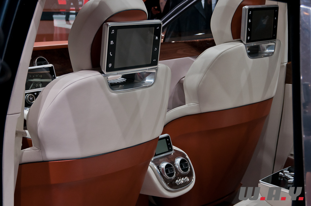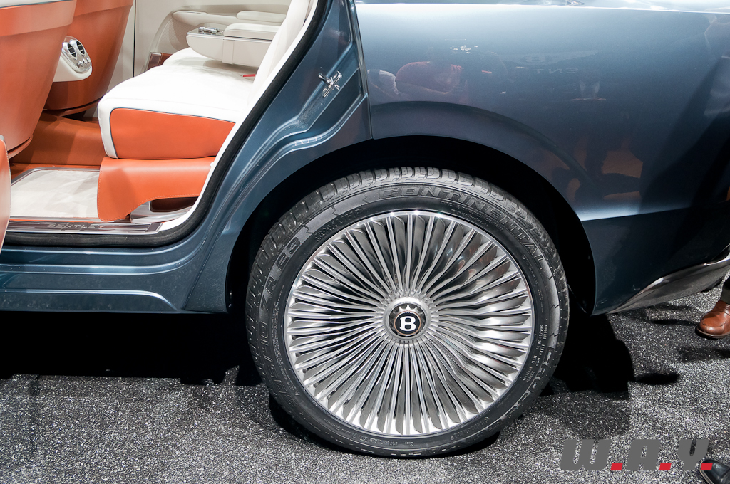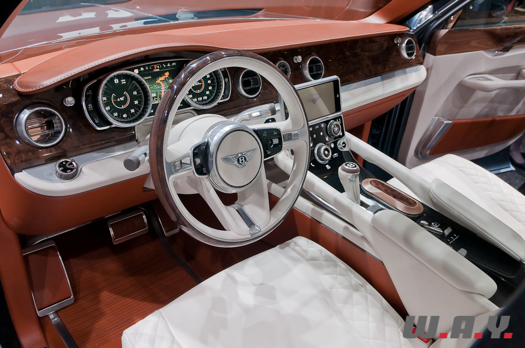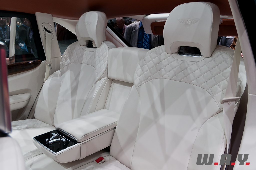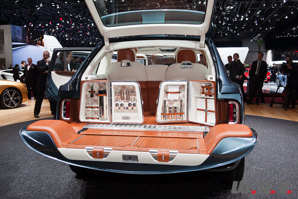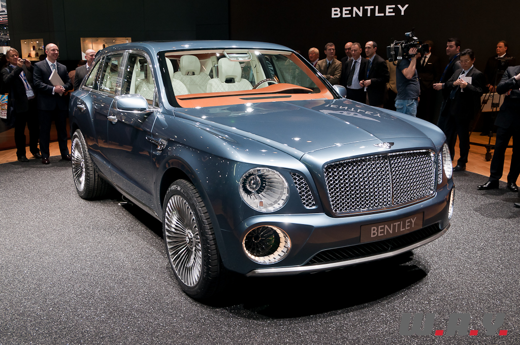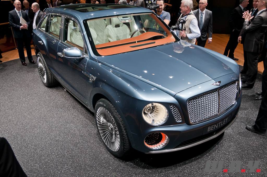 Le concept EXP 9F offre une possible troisième gamme Bentley aux côtés des Mulsanne et Continental. Il est présenté à Genève avec une motorisation W12 6,0 litres à double turbo-compression couplée à une transmission 8 vitesses. Le V8 4,0 litres à double turbo-compression lancé récemment sur la Continental GT, et dont la déclinaison GTC se dévoile aussi à Genève, voire pourquoi pas un moteur à transmission hybride, pourraient aussi satisfaire les exigences de performance de ce futur SUV. Les principales touches esthétiques propres à Bentley, telles que sa calandre, ses phares ronds, ainsi que sa ligne de puissance et ses hanches musclées sont réinterprétées pour l’EXP 9F. Le style “taillé dans la masse” et une foule de détails innovants accentuent le caractère puissant et imposant de ce SUV très haut de gamme. Fusion de luxe artisanal et contemporain avec une technologie embarquée avancée, une position de conduite prédominante et une capacité tout-terrain, dont la base provient de l’Audi Q7, tout cela fait que ce SUV pourrait bien voir le jour prochainement.