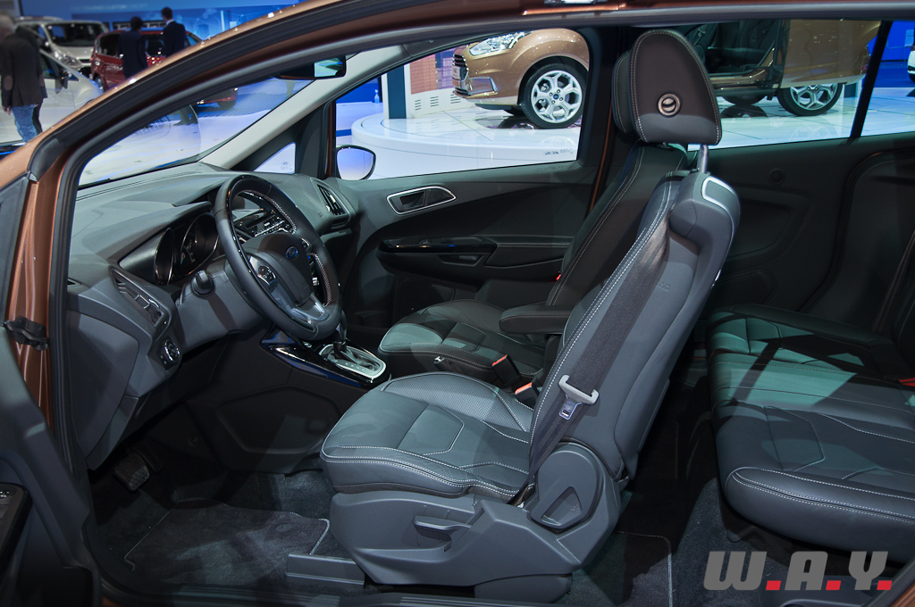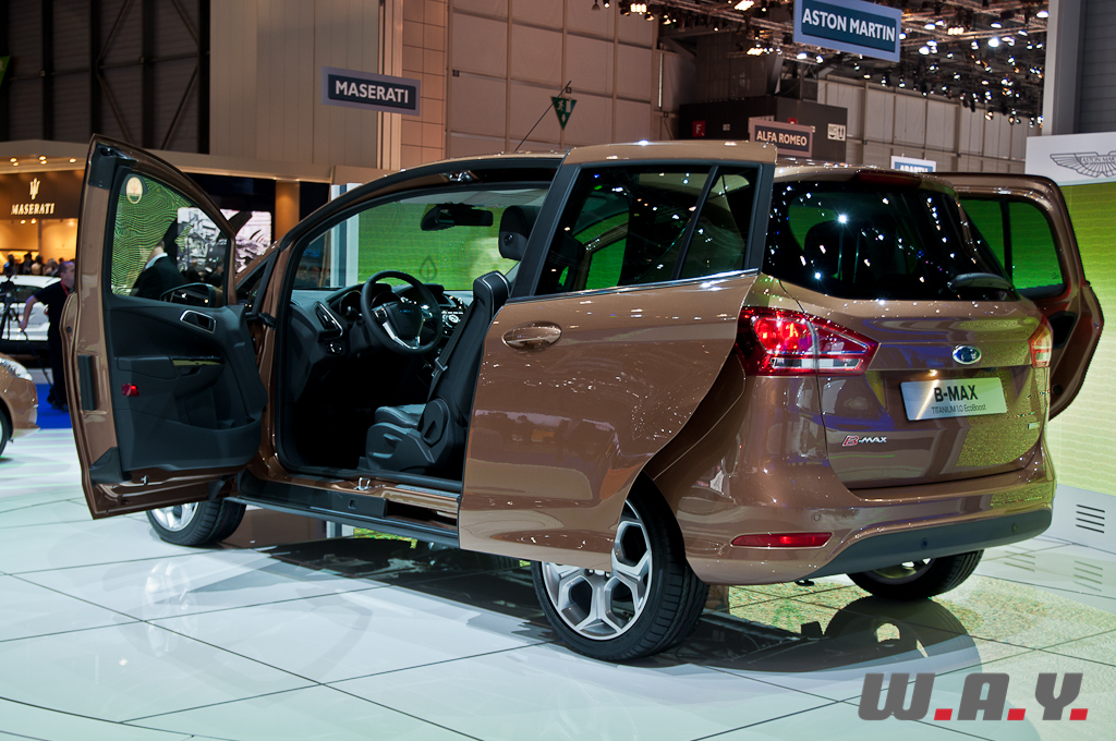 Première mondiale à Genève du Ford B-MAX avec une innovation de taille, ses portes : traditionnelles à l’avant et coulissantes à l’arrière, intégrant le montant central. Ces dernières et leur système d’ouverture Easy Access confèrent à ce nouveau B-MAX une facilité d’accès exceptionnelle, environ 1m50 de large. Le minispace Ford basé sur la même plate-forme que la Fiesta mesure 4.06 mètres seulement, un atout indéniable pour une utilisation urbaine. De plus, le B-MAX propose des motorisations innovantes et une technologie de pointe. Plusieurs moteurs disponibles, dont un essence et un diesel particulièrement sobre et propre. Le premier, un trois cylindres 1.0 l. d’une puissance de 100 ou 120 CV qui dans sa version la plus puissante annonce une consommation moyenne de 4.9 l/100km pour des émissions de CO2 de 114 g/km. Niveau diesel, c’est un 1.6 TDCi de 95 CV qui émet 104 g/km de CO2 et consomme 4.0 l/100km en utilisation mixte. Avec un équipement très complet, des assistances à la conduite de dernier cri, il y a fort à parier que ce Ford B-MAX aura un grand succès auprès de la clientèle suisse.