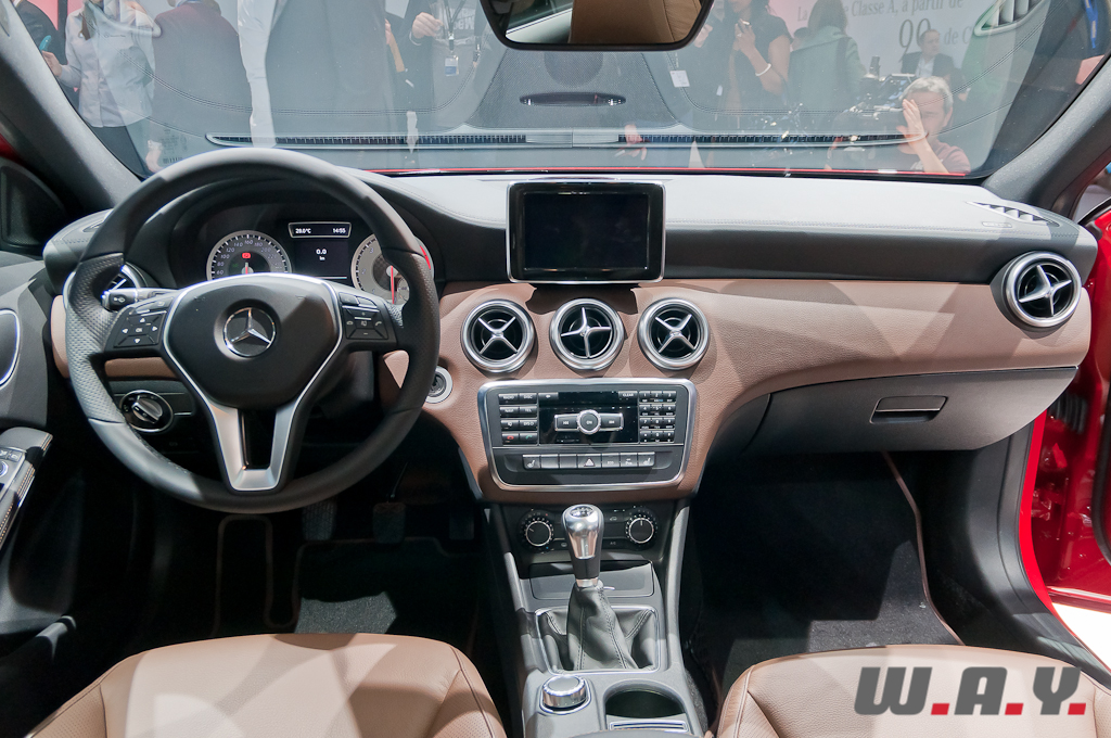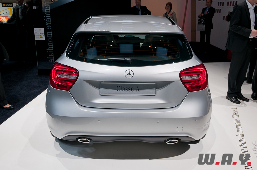 Déjà conquis lors de la découverte des photos de presse, nous l’avons été encore plus en approchant la voiture aujourd’hui. Résolument plus dynamique que la version précédente, cette nouvelle Mercedes-Benz Classe A va propager un vent de fraîcheur sur la marque à l’étoile. Différentes motorisations, essence et diesel, seront disponibles allant de 109 à 211 CV, avec pour le meilleur des cas, des émissions de CO2 de seulement 99 g/km. Toutes les versions seront équipées en série du radar anti-collision (COLLISION PREVENTION ASSIST) prouvant ainsi que la sécurité est un point important pour le constructeur. Plus basse de 18 cm par rapport à sa devancière, c’est l’une des caractéristiques qui lui confère une image plus dynamique et donne à la ligne générale une impression de fluidité. Pour accentuer le côté sportif, les spécialistes AMG ont été immédiatement impliqués dans le développement d’un modèle spécifique appelé “Sport Edition engineered by AMG” affichant ainsi quelques ressemblances avec le Concept A-CLASS qui préfigurait ce que serait la nouvelle compacte allemande. Autre innovation sur cette Classe A, le système CAMTRONIC qu’on retrouve sur le moteur 1.6 litre. Cette technologie permet de limiter le volume de gaz frais émis et de réduire la consommation grâce au décalage de la levée des soupapes d’admission. Cette nouvelle Mercedes-Benz Classe A sera disponible en concession dès le mois de septembre.