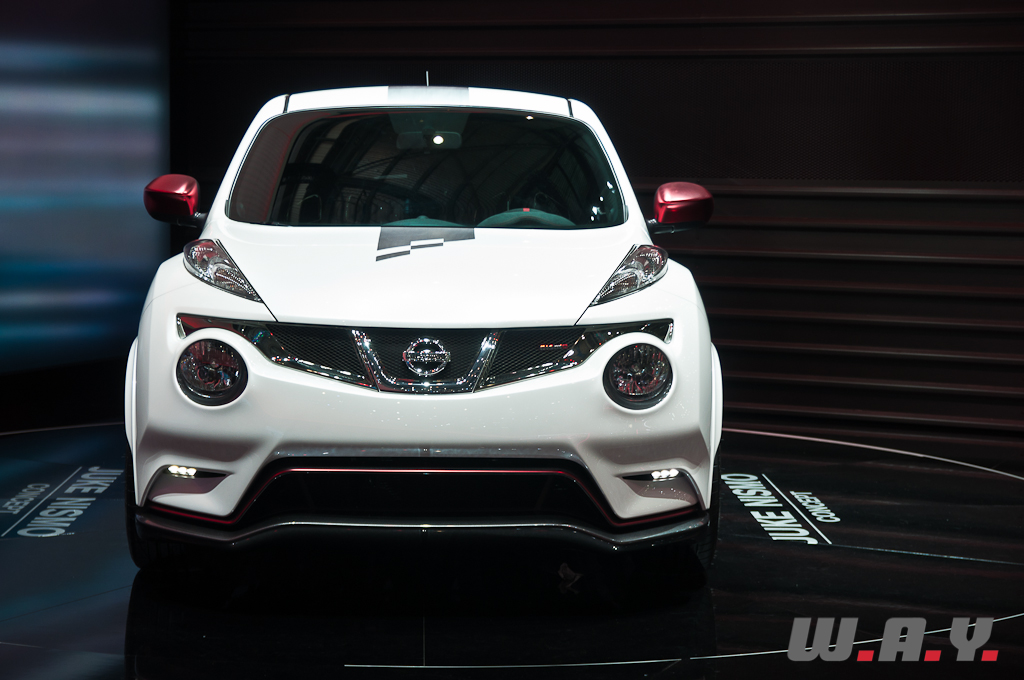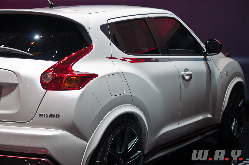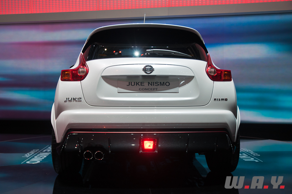 Toutefois, le constructeur japonais profite de l’occasion pour confirmer la production de ce Juke Nismo et il sera donc le premier modèle de série à recevoir le traitement du préparateur maison Nismo. C’est agréable de constater que certaines marques osent encore produire des voitures ayant une orientation plaisir avant tout. A mi-chemin entre le démoniaque Juke GT-R (production non prévue) et les modèles de la gamme actuelle, ce Juke Nismo promet d’être un bon compromis entre sportivité et praticabilité. Pour l’instant les détails sur la motorisation ne sont pas encore dévoilés, si ce n’est que ce sera un moteur turbo essence à injection directe préparé. D’autre part, Nissan mentionne encore que le Juke Nismo arrivera sur nos routes d’ici la fin de l’année, qu’il bénéficiera de nouveaux réglages de suspension et qu’il sera disponible en deux et quatre roues motrices comme c’est le cas pour les versions existantes. A ce propos, nous publieront prochainement l’essai de la version essence 190 CV, quatre roues motrices et boîte automatique CVT. Le dessin sera quasi identique au Concept présenté à Genève, un savant mélange lui procurant un look de SUV très sportif. Nous nous réjouissons de découvrir la mouture finale et si le succès est au rendez-vous peut-être que Nissan se décidera à mettre en production la version GT-R.