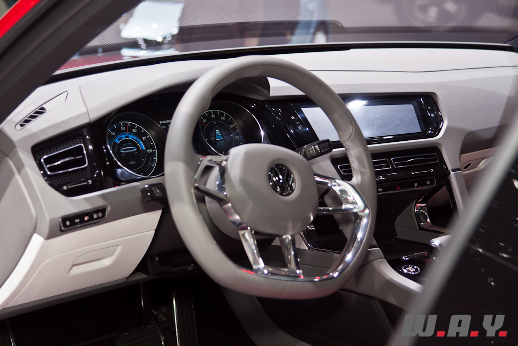 Le Cross Coupé sous ses airs de tout-terrain croisé avec un coupé, un peu dans l’esprit d’un BMW X6, débarque à Genève en se présentant comme le SUV le plus efficace au monde du fait de sa consommation de seulement 1.8 l/100km ! Sur la première monture présentée au Japon, le constructeur annonçait le chiffre déjà très raisonnable de 2.7 l/100km. Les émissions de CO2 ont aussi été améliorées pour atteindre 46 g/km contre 62 g/km en décembre. Ces chiffres sont obtenus grâce à une motorisation TDI Plug-In-Hybrid (un moteur turbodiesel à injection directe et deux moteurs électriques) qui développe la puissance totale de 306 CV. Le moteur TDI à lui seul propose un coupe de 400 Nm disponible dès 1’600 t/min et sur simple pression d’un bouton les deux blocs électriques fournissent un complément de 180 Nm à l’avant et 270 Nm à l’arrière. En mode “boost”, quand toute la puissance est délivrée, le couple maximum combiné atteint 700 Nm. Le Cross Coupé affiche ainsi les performances d’une sportive, le côté pratique d’un SUV et la consommation d’une citadine; tout un programme. En mode électrique pur, ce crossover VW peut atteindre les 120 km/h sur une distance maximum de 45 km avec une propulsion sur les roues arrière exclusivement, alors qu’avec le TDI uniquement, seules les roues avant sont motrices. Suivant les modes utilisés, comme par exemple Offroad, les quatre roues se chargent de tracter. Son look dynamique et compact, plus grand qu’une Golf mais plus petit qu’un Tiguan, propose des lignes fluides et très modernes. L’ensemble est très abouti, tout proche d’une voiture de série, mais pas d’information sur une entrée en production pour le moment.