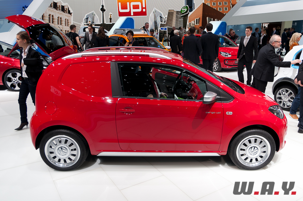 La Volkswagen up!, cousine des Seat Mii et Skoda Citigo, débarque à Genève en version cinq portes.