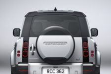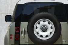 Des angles nets, un capot relativement haut avec des ailes proéminentes, mais surtout un arrière radicalement droit, cette nouvelle génération fait perdurer un dessin connu de tous ou presque. Certes, les optiques avant ne sont plus simplement rondes, avec les clignotants indépendants, faisant évoluer le regard du Defender. C’est peut-être le détail qui marquera le plus les passionné(e)s des générations précédentes. A l’inverse, les petits phares séparés à l’arrière sont plutôt proches de ceux qu’on connaît déjà et il y a toujours une roue de secours fixée à l’extérieur de la porte arrière. Cette dernière s’ouvre d’ailleurs à l’identique, encore un clin d’œil au passé.