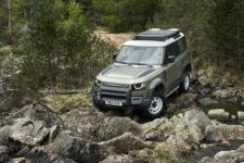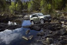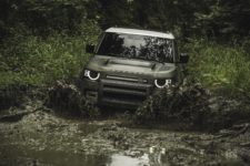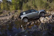 Comme au préalable, ce nouveau Defender sera également proposé en deux longueurs, 90 et 110, avec des empattements respectifs de 2’587mm et 3’022mm. L’architecture totalement nouvelle appelée D7x est basée sur une conception monocoque très légère en aluminium. La garde au sol est de 291 mm, mais surtout, avec tous les organes vitaux placés le plus haut possible, ce Defender est capable de franchir des gués allant jusqu’à 900 mm. Bien entendu, il dispose d’une transmission sur les quatre roues, de petites vitesses, mais surtout des toutes dernières technologies Terrain Response.
