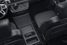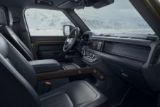 L’habitacle est lui aussi totalement nouveau, tout en conservant également les spécificités de certaines générations précédentes. Le détail le plus marquant, c’est la possibilité d’avoir trois places à l’avant. Ainsi, le Defender 90 pourra proposer 5 ou 6 places, alors que le Defender 110 sera configurable en 5, 6 ou 5+2 sièges. Pour ce dernier, le volume de chargement après la deuxième rangée est de 1’075 litres, allant jusqu’à 2’380 litres en la repliant.