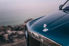 L’extérieur propose des teintes particulières qui rappellent l’univers marin. Les chromes ont aussi la part belle, toujours en accord avec la marine où il constitue la meilleure protection contre la corrosion de l’environnement marin. Ainsi, la calandre surmontée de la Spirit of Ecstasy, les cadres de fenêtres ou les grandes roues de 23 pouces brillent de mille reflets.