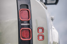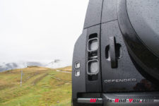 Nous optons pour un châssis long SE fort de 250 ch. La pluie redouble et on nous annonce des montées pentues. Certains visages se figent. De notre côté, les affaires sont chargées dans l’énorme coffre arrière et nous découvrons l’espace à bord. Soyons clairs, nous sommes bien au 21ème siècle, comme cela avait déjà été relevé par mes collègues lors de nos différents essais (Defender 110 P400, Defender 90 D200 et Defender 110 P400e).