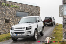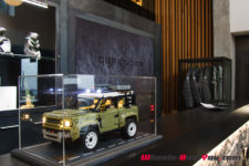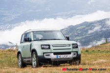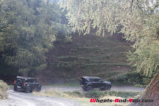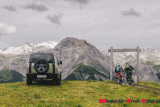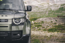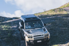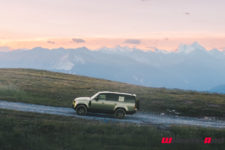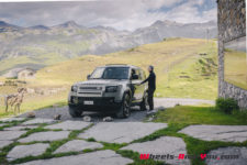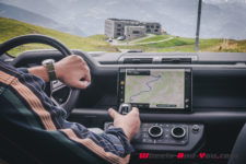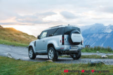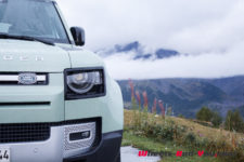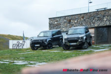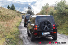 C’est à midi que nous sommes accueilli par l’équipe Land Rover. Une bonne quinzaine de Defender sont là, de toutes les versions et couleurs ; Grasmere Green que l’on trouve exclusivement sur les éditions limitées 75ème anniversaire, Fuji White, Pangea Green, Eiger Grey, Hakuba Silver, Indus Silver, Tasman Blue, Gondwana Stone, ou les exclusives Silicon Silver et Carpathian Grey, à chacun ses goûts. Je craque pour le Pangea Green, une teinte métallisée, avec le toit blanc mais la version “90”, châssis court, de la série 75th ne me déplairait pas non plus.