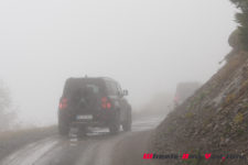Nous montons et quittons le niveau de la forêt. Le Defender se joue du terrain et progresse sur le couple. Nous aurions aimé un passage de gué mais l’itinéraire n’en propose pas. Ce sera peut-être pour une autre aventure, plus extrême avec repas au feu de bois et couchage sur le toit.