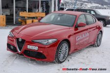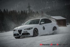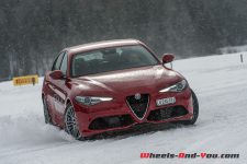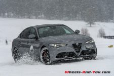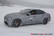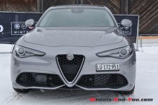 Je pense que personne ne me contredira, la première chose qui me saute aux yeux, c’est la beauté de sa ligne ! Difficile de ne pas tomber sous le charme… mon collègue l’avait déjà relevé lors de notre première prise en main. Disponible en version Q4, avec à choix le diesel de 210 ch et l’essence de 280 ch, la Giulia est une berline plaisante à regarder et à piloter. Dans ces conditions hivernales, cette quatre roues motrices est d’une efficacité redoutable et apporte une réelle alternative aux productions allemandes. Difficile à prendre en défaut avec toutes les assistances électroniques, elle devient plaisante une fois déconnectée de ses béquilles électroniques. Cependant, on reste sur sa faim à l’amorce des dérives que l’on rêve interminables mais qui sont brutalement stoppées par les garde-fous. Certes le niveau de qualité de finition n’est pas encore tout à fait au niveau de la concurrence germanique, mais les efforts apportés et la pléthore d’équipements proposée font d’elle une berline à évaluer lors d’un potentiel futur achat. Nous aurons l’occasion d’y revenir puisque nous vous proposerons prochainement des essais complets de la Giulia Veloce 4×4 avec le moteur essence de 280 ch et de la démoniaque Giulia Quadrifoglio avec ses 510 ch.