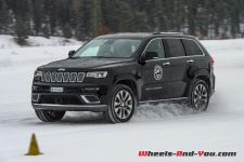 Plus modeste mais pas pour autant inintéressant, le Trailhawk équipé d’un V6 3.6 litres de 286 ch est mon compagnon notamment pour l’atelier franchissement. Très confortable, spacieux et bien équipé, c’est un partenaire de voyage fidèle qui permet de sortir des sentiers battus sans ennuis. Annoncé comme version aux capacités de franchissement les plus élevées du SUV Jeep, le Trailhawk est tout simplement bluffant pour ses aptitudes à se mouvoir sur des pentes ahurissantes : démarrages en côte sans broncher (merci à l’assistance aux démarrages en côte, au différentiel central et aux trois autobloquants), traction jamais prise en défaut, suspension pneumatique apportant confort tout comme améliorant la motricité et, surtout, le nouveau Select-Speed Control. Petite astuce si vous voulez augmenter vos dérives sur la neige, réglez le sélectionneur sur Sand.