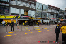 Pour ne pas paralyser la ville trois jours durant, les essais libres sont avancés au jeudi et notre visite a lieu durant et après la deuxième séance. Lors du Free Practice 1, Hulkenberg et Ricciardo montrent des chronos encourageants, avec respectivement une 7ème et une 11ème place. Après mise au point, la deuxième séance d’essais libres rend son verdict : 16ème et 17ème.