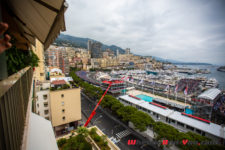 Renault nous accueille chez l’habitant, enfin presque. Les autochtones préfèrent parfois louer leur logement le temps d’un week-end prolongé pour prendre leurs distances de cette pagaille. Vidé de ses meubles, un appartement au 8ème étage nous accueille le long de la ligne de départ. Du balcon, on a une vue sur la grille, la sortie du tunnel, le gauche du bureau de tabac, la chicane de la piscine ainsi que l’entrée de la Rascasse et la sortie du virage Anthony Noges. À notre arrivée les F1 roulent déjà, petite déception le vacarme n’est pas assourdissant, les plus bruyantes seront des coupés 6 cylindres à plat, c’est dire !