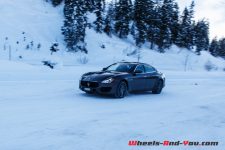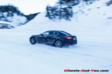 Enfin, lors d’un exercice sur un parking passablement enneigé, il a été possible de tester également la Ghibli S Q4. Toujours avec le même excellent V6 biturbo mais dégonflé à 410 ch à 5’500 t/min et 550 Nm entre 1’750 et 5’000 t/min, la voiture est très séduisante. Bien entendu, grâce à ses quatre roues motrices, rien ou presque ne vient troubler la conduite de cette familiale sportive sur ces routes recouvertes d’un mélange de neige, de glace et de sel.