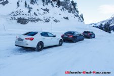 Hasard du calendrier, la neige qui s’est abattue en janvier est tombée à pic pour permettre à Maserati d’organiser une sortie avec de réelles conditions d’enneigement. Dès 9h00, nous sommes une dizaine de personnes à nous relayer à bord de tous les modèles de la marque, à l’exception de la GranTurismo (cette dernière était seulement sur le parking de l’hôtel).