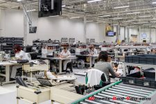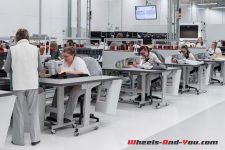 Viennent ensuite les départements dédiés au travail du cuir et du bois. Et là, c’est véritablement un monde merveilleux qui vous allume des étincelles dans les yeux. Les bâtiments dédiés à ces activités sont impressionnants par leur taille. Proportionnellement au volume des pièces travaillées, un siège ou un tableau de bord étant moins encombrants qu’une voiture, l’espace à disposition est gigantesque. On y retrouve la sélection des matériaux, la découpe en fonction des besoins, les coutures et autres surpiqûres pour le cuir, la préparation des éléments en bois, etc. C’est phénoménal.
