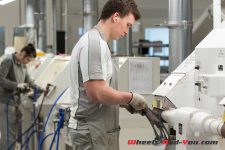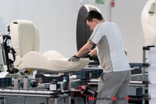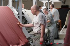D’abord, nous visitons l’atelier pour le cuir qui comprend notamment la fabrication des sièges. Presque tout est cousu à la main par des personnes possédant un savoir-faire unique. Quel régal de les voir œuvrer ! A noter qu’il faut un peu plus de 20 heures pour concevoir un siège de Continental GTC Speed, sans compter les contrôles de qualité drastiques qui ne laissent rien passer. A l’en croire, l’homme responsable de vérifier le siège qui vient de se terminer sous nos yeux n’a aucun ami dans cette usine, humour british inside.