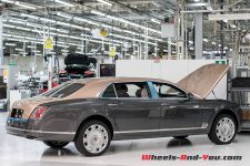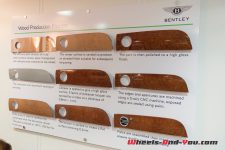 Nous découvrons ensuite la menuiserie, le « Wood Shop » comme ils l’appellent. Là règne une douce et agréable odeur de bois, quel charme. Tout comme pour le cuir, la sélection de la matière est faite de manière minutieuse. Chaque « plaque » de bois, composée de 24 couches, doit être totalement symétrique afin que les dessins des veines soient identiques devant les yeux du conducteur et ceux du passager, c’est complètement dingue. Pour la Mulsanne, c’est encore un cran au dessus, puisque il s’agit de bois massif dont le choix se fait là aussi de manière très exigeante.