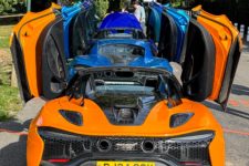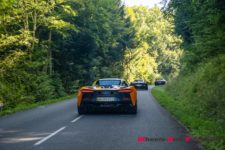 Notre petit cortège prend la route et au-delà de l’aspect sportif des voitures, les couleurs tapent dans les yeux de tous les passants avec des réactions généralement très sympas. Certains semblent aussi un peu perplexes car pour le quidam, la marque McLaren n’est pas aussi connue que certaines marques italiennes ou allemandes. Après le premier instant de surprise, nombreux sont ceux qui scrutent l’auto pour trouver le badge apposé sur cette robe chatoyante.