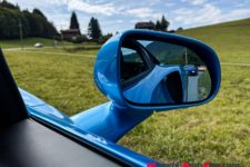 Bref, il est temps de démarrer et David nous indique que toutes les voitures sont équipées de la levée du train avant pour sortir sans encombre de Chens-sur-Léman avant d’attaquer la montée vers les Cimes-du-Léman, à presque 1’100 mètres d’altitude. Détail intéressant, le bouton du « lift » est désormais positionné sur la console avant-gauche et est parfaitement visible. C’est bienvenu car sur les autres modèles de la marque, il est un peu caché car rattaché au levier d’activation/désactivation du régulateur de vitesse.