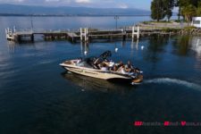 Mais avant de prendre son volant, une petite surprise attend les invités. Alors que le rendez-vous a lieu sur les quais de la ville de Nyon, l’essai est prévu en Haute-Savoie et il faut donc traverser le Léman pour rejoindre Chens-sur-Léman. Comment ? C’était faisable en voiture mais ça promettait d’être long et ennuyeux. L’autre option, c’était le bateau pour couvrir les 7 km qui nous séparent de la rive opposée, non pas un bateau estampillé CGN mais une formidable embarcation fabriquée par MasterCraft.