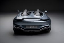 Les puristes de la marque de Gaydon auront tout de suite repéré le fort héritage issu des fabuleux modèles DBR1 ou DB3S, sans oublier l’influence notable de la CC100 Speedster concept de 2013. Développé par le service de personnalisation sur mesure « Q by Aston Martin », la V12 Speedster repose sur la toute dernière version de l’architecture en aluminium collé, et reprend moult élément de la DBS Superlegerra et de la Vantage. L’absence de toit et de parebrises ainsi que les puissants accents aéronautiques confèrent à la V12 Speedster une ligne inimitable. Le résultat final est tout simplement sublime.