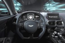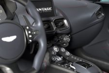 Dans le but d’améliorer encore les performances, Aston Martin a procédé à une cure amatissante sur une série de composants: pots d’échappement (-7.2 kg), disques en céramique (-23 kg), jantes optionnelles ultra-légères (-8 kg), etc. Au total, la marque revendique une puissance de 390 ch par tonne ce qui est un ratio 20% plus élevé que la Vantage équipée du V8. Pour la partie aérodynamique, élargissement de la grille avant de 25% afin d’améliorer le refroidissement du moteur et adoption d’un aileron qui confère une force supplémentaire d’appui au sol de 204 kg à pleine vitesse.