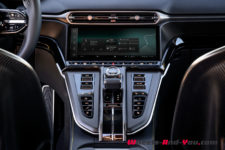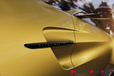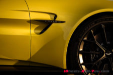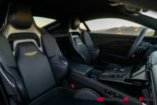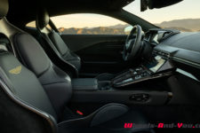 Aston Martin profite de cette évolution pour intégrer un face lift du plus bel effet. Son aspect le plus marquant est le remplacement des optiques avant – sans doute l’élément le plus clivant du design initial. Ces nouveaux phares rappellent ceux de la DB12, dont nous espérons vous proposer un essai complet prochainement, et s’intègrent à merveille au design de l’auto. La face avant est également retravaillée avec une calandre qui s’élargit et l’auto gagne en largeur, rappelant sous certains angles la mythique One-77. Les radiateurs reçoivent ainsi 50% d’air frais en plus pour équilibrer le bilan thermique du groupe propulseur. L’auto gagne à la fois en muscles et en charisme.