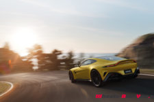 Ce sont les sensations de conduite qui ont dicté le développement de cette nouvelle Vantage. Côté châssis, la répartition des masses est parfaite avec 50% sur chaque essieu. Le berceau avant a été reculé et renforcé pour renforcer les encrages des doubles triangles superposés du train avant qui gagnent 29% de rigidité sous charge. La Vantage évolue aussi avec l’arrivée d’amortisseurs adaptatifs Bilstein DTX, d’un différentiel actif e-Diff et d’une monte pneumatique Michelin Pilot S 5 AMR spécifique. La colonne de direction est non-isolée afin d’assurer un ressenti optimal au conducteur. L’équipement de base inclut des disques de frein en acier alors qu’une version en carbone céramique est disponible en option. Le système de contrôle de la stabilité ATC comporte pas moins de 8 positions qui permettent de gérer le patinage et donc le dérapage de l’essieu arrière en fonction de l’adhérence et de la conduite.