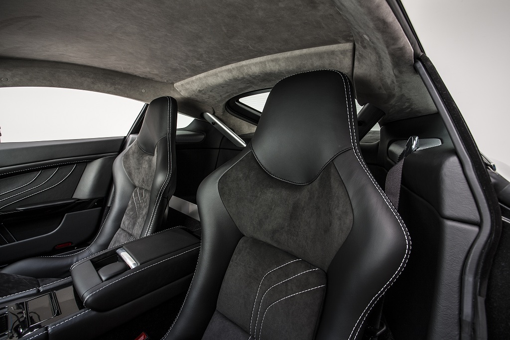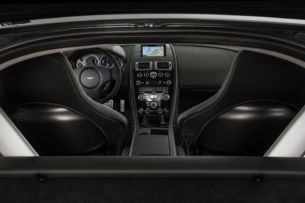 Cette série spéciale sera disponible dans une seule teinte “Ceramic Grey Metallic” tant en Coupé qu’en Roadster. Pour cette dernière, la capote sera elle “Titan Grey”. Les jantes 19 pouces noires avec finition “Diamond” ainsi que les étriers de freins noirs font partie des spécificités de cette Vantage SP10, tout comme le spoiler avant et le diffuseur, tout deux en carbone. A l’intérieur, tout est recouvert de cuir et Alcantara noir avec des surpiqures argent.