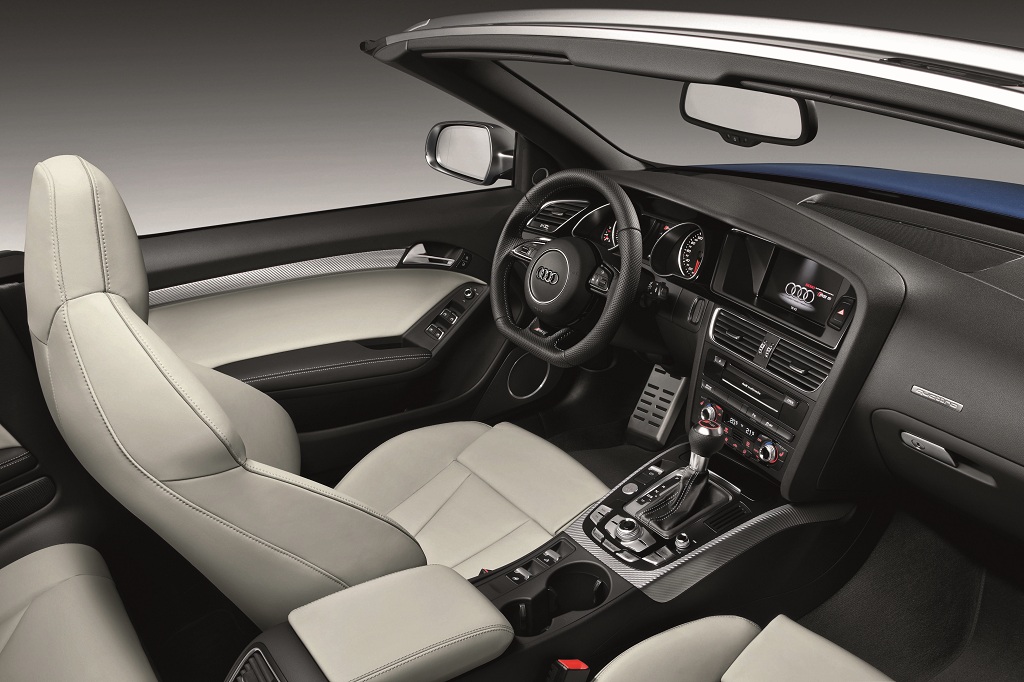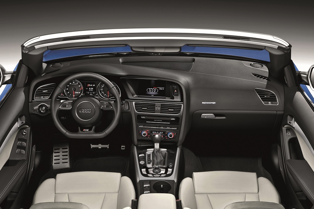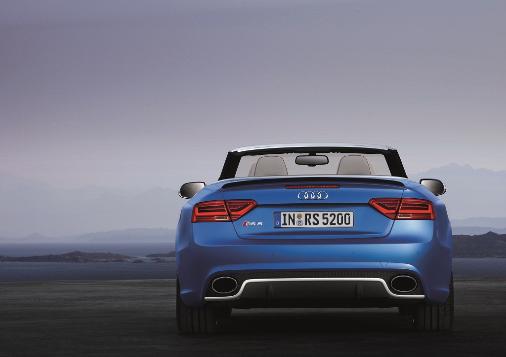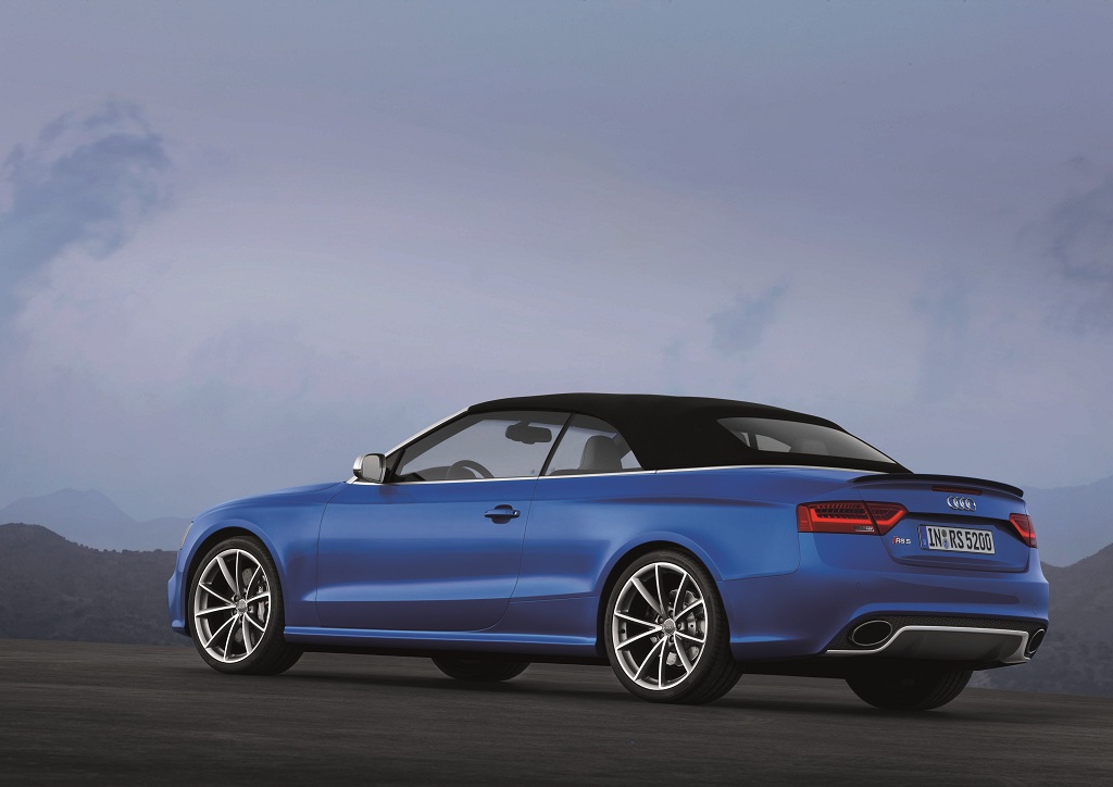 Après la présentation au dernier Salon de Genève de la nouvelle RS4 Avant, le constructeur aux quatre anneaux dévoile aujourd’hui la RS5 Cabriolet. La motorisation est identique, le V8 4.2 FSI développant la puissance de 450 CV pour un couple de 430 Nm et qui équipe bon nombre de sportives de la marque. Pour le reste, rien de vraiment innovant : une transmission Quattro et une boîte S-Tronic. La RS5 Cabriolet dispose de quatre places pour jouir du plein air en famille, avec un coffre de 380 litres, tout en écoutant la sonorité endiablée du moteur V8. Niveau design, la RS5 Cabriolet reprend les codes stylistiques actuels de la marque avec toutefois des lignes bodybuildées déjà vues sur la RS5 coupé. Elle se voit équipé d’une capote en tissu, comme les modèles A5/S5 Cabriolet, n’en déplaise aux adeptes des toits rigides rétractables. Cette nouvelle Audi RS5 Cabriolet arrivera sur nos routes dès le printemps 2013 et son prix de départ sera de CHF 121’900.-.