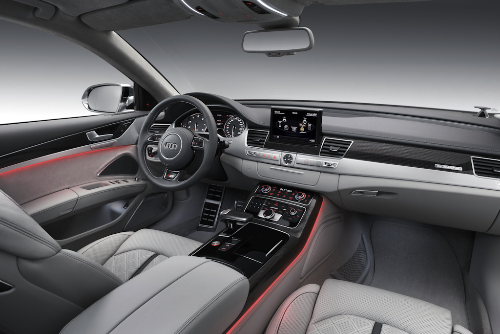 Version survitaminée du vaisseau amiral d’Ingolstadt, l’Audi S8 sera équipée du tout nouveau V8 biturbo 4.0 l. TFSI que l’on retrouve également sous le capot des S6, S7 et sous celui de la nouvelle Continental GT de Bentley.