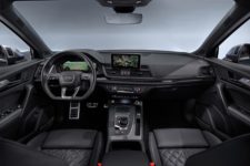 Le design extérieur arbore une identité spécifique lui conférant un style plus sportif. On note par exemple des pare-chocs plus imposants avec des prises d’air aux contours prononcés et une calandre Singleframe avec éléments en gris “Twilight Mat”. Tout cela est renforcé par les jantes 20 pouces, voir 21 pouces proposées en option. L’habitacle en cuir et alcantara renforce le dynamisme de ce SQ5, il est possible aussi d’opter pour un intérieur cuir nappa avec surpiqures en losange.