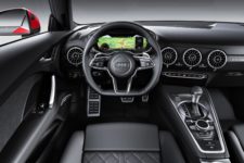 La calandre avant évolue doucement pour apporter plus de sportivité alors que les phares peuvent dorénavant être équipés de l’option Matrix LED. A l’arrière, seul le graphisme des feux vous permettra de la différencier du modèle qu’elle remplace. L’option S-Line est toujours disponible avec une signature visuelle sportive renforcée qui accentue plus encore le côté viril de la voiture. Force est de constater que nous sommes maintenant bien loin des lignes toutes en rondeur de la TT de 1998.