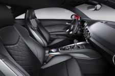 La calandre avant évolue doucement pour apporter plus de sportivité alors que les phares peuvent dorénavant être équipés de l’option Matrix LED. A l’arrière, seul le graphisme des feux vous permettra de la différencier du modèle qu’elle remplace. L’option S-Line est toujours disponible avec une signature visuelle sportive renforcée qui accentue plus encore le côté viril de la voiture. Force est de constater que nous sommes maintenant bien loin des lignes toutes en rondeur de la TT de 1998.