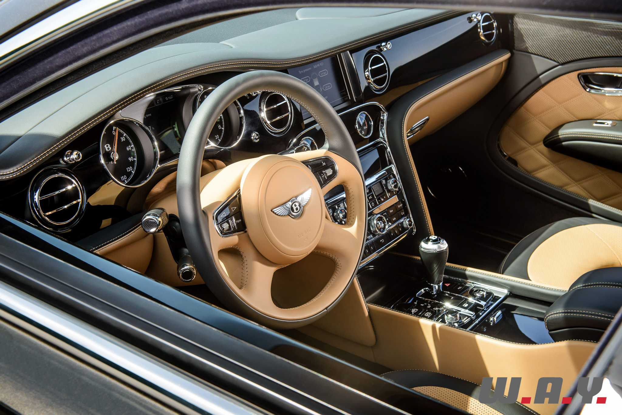Le châssis a également été revu pour l’occasion. Sur la Mulsanne Speed, il adopte une gestion paramétrable de l’amortissement à 4 modes. “Bentley” qui gère le tout en fonction de la conduite, “Confort” qui privilégie le bien-être et “Sport” qui ajuste l’amortissement, la direction et le contrôle dynamique pour plus de sensations. Enfin, un mode “Custom” permet de choisir le meilleur des 3 modes et les combiner.