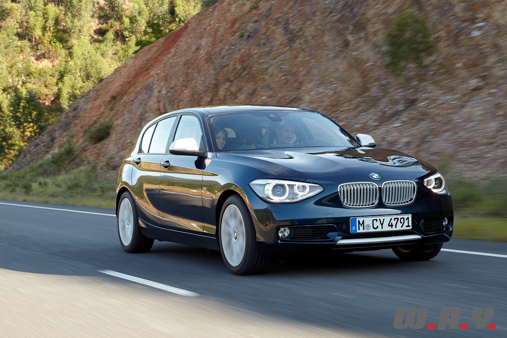 Alors qu’elle n’était qu’un secret de polichinelle depuis quelques mois, la nouvelle Série 1 se dévoile enfin sans son camouflage. Au premier regard, pas de bouleversement dans la ligne générale. Les attributs stylistiques actuels de la marque par contre font leur apparition, comme les nervures sur le capot, la calandre proéminente et les phares avant plus gros et plus carrés.