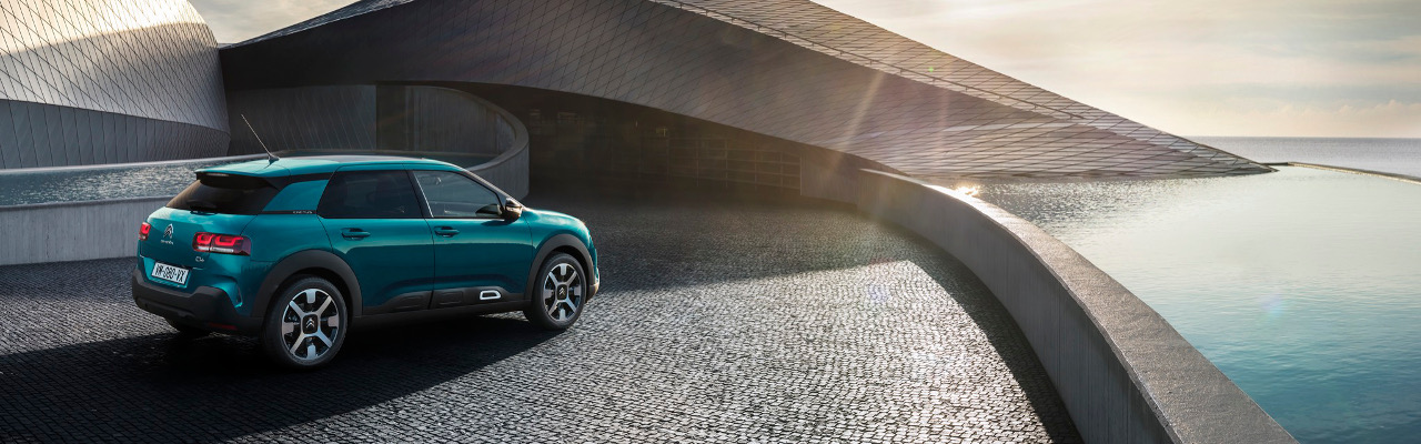 La face avant est complètement redessinée. Elle apporte plus de sagesse, intègre la double ligne de chevrons chromés, une grille d’entrée d’air plus grande et un bas de bouclier reprenant les écopes du C5 Aircross. Sur les flancs, les changements sont encore plus visibles avec la disparition des Airbumps, véritable signature visuelle de l’ancien C4 Cactus. Sur la nouvelle berline, ces Airbumps se font plus discrets, et se retrouvent relégués sur le bas des portières. Les barres de toit disparaissent (bien que disponibles en option) afin de définitivement casser l’image SUV du Cactus. Ces modifications rendent la voiture moins haute, plus longue, bref plus berline… Sur la face arrière, l’absence des Airbumps et l’apparition de feux à LED empiétant largement sur la hayon renforcent à nouveau le côté berline voulu par Citroën.